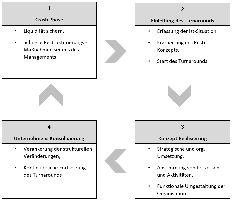 Die Lösung bzw. der Fokus sollte darauf ausgerichtet werden, das Unternehmen erfolgreich bzw. nachhaltig auf dem Markt zu erhalten. In diesem Zusammenhang wäre die Einleitung des Turnarounds für das betroffene Unternehmen unerlässlich.